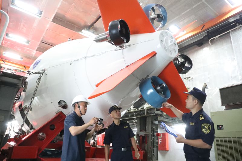 8月11日,青島大港口岸1號(hào)碼頭,在辦完出入境船舶監(jiān)管手續(xù)后,“深海一號(hào)”遠(yuǎn)洋科考船解纜離境,搭載“蛟龍?zhí)?rdquo;載人潛水器正式開始為期45天的西太平洋科考之旅。