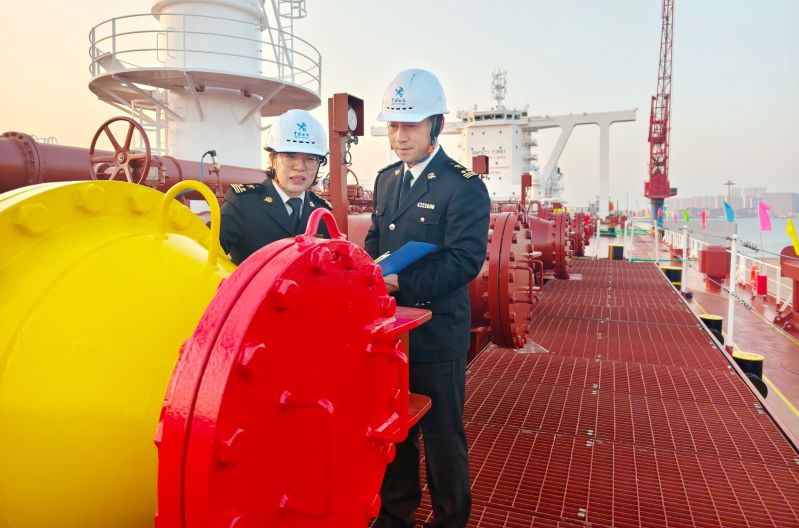 圖為:海關(guān)關(guān)員對即將交付的VLCC船進(jìn)行監(jiān)管 封磊/攝