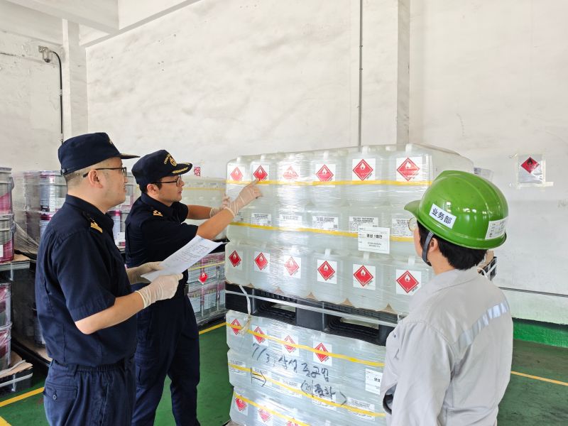在三星重工業(yè)(榮成)有限公司海關(guān)監(jiān)管區(qū),一批進(jìn)口船用涂料稀釋劑經(jīng)海關(guān)船邊查驗(yàn)后,正快速轉(zhuǎn)運(yùn)至恒溫倉(cāng)庫(kù)。