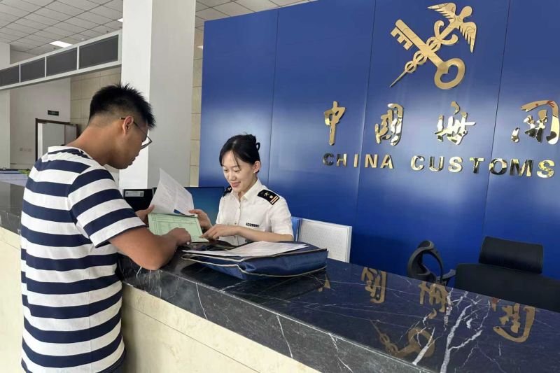 圖為:海關關員正在指導企業(yè)進行ATA單證申報 呂良鈺/攝