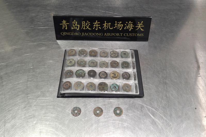 青島膠東機場海關(guān)查獲攜帶禁止出境文物27件(圖)