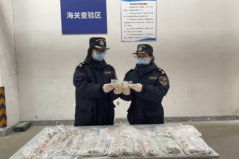 海關(guān)關(guān)員在對1批空運進口貨物進行監(jiān)管時,發(fā)現(xiàn)機檢圖像異常。經(jīng)人工查驗,發(fā)現(xiàn)進口服裝中夾藏有不同顏色、不同形狀、僅使用透明塑料袋簡單包裝的彩色藥片,且包裝上缺少生產(chǎn)日期、生產(chǎn)廠家及質(zhì)量合格證明等產(chǎn)品信息。經(jīng)清查共計2.58萬粒。經(jīng)現(xiàn)場快速檢測,藥片呈甲基苯丙胺陽性。
