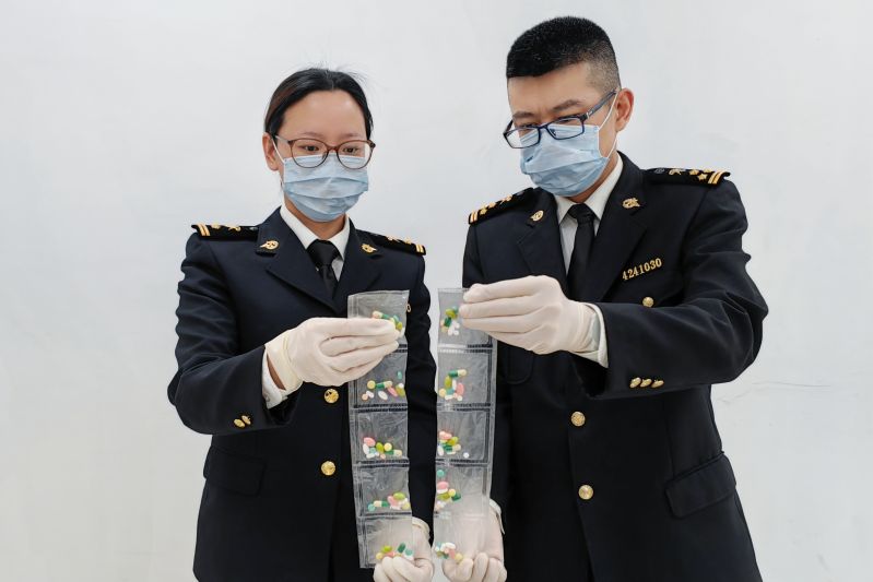 煙臺海關(guān)查獲違規(guī)攜帶進境“三無”減肥產(chǎn)品539粒(圖)