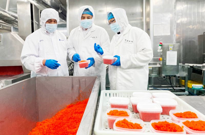 “憑借過硬的產(chǎn)品品質(zhì)和快速的通關(guān)效率,我們出口的飛魚籽在國外市場深受好評,今年上半年已出口6噸,同比增長超2倍?!标愌嵳f。