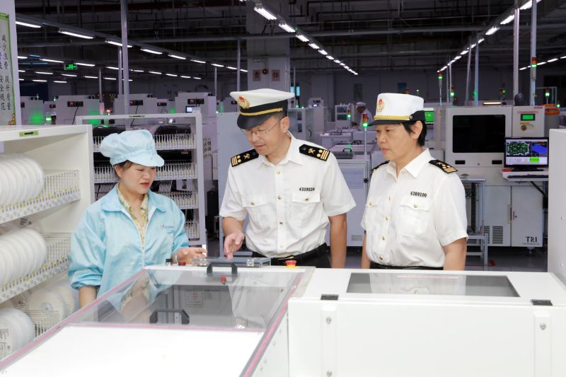 圖為:海關(guān)關(guān)員到綜保區(qū)企業(yè)調(diào)研 馬馳越/攝