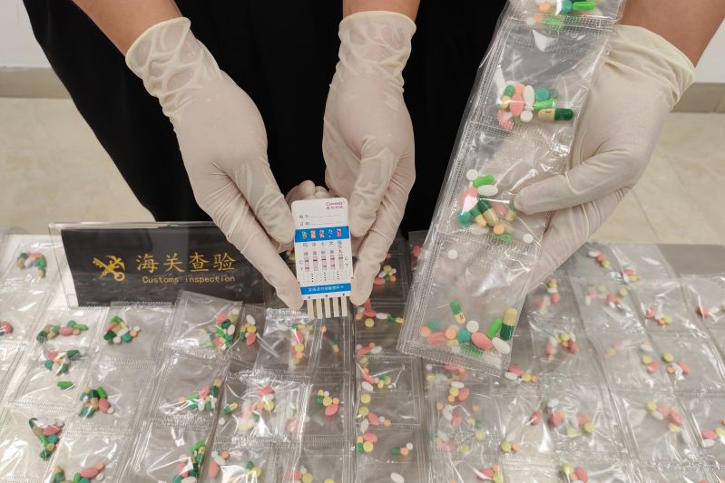 海關(guān)關(guān)員在對(duì)入境航班進(jìn)行監(jiān)管時(shí),發(fā)現(xiàn)一名選擇“無申報(bào)通道”入境的旅客行李機(jī)檢圖像異常。經(jīng)開包查驗(yàn),查獲用透明塑料袋簡(jiǎn)單包裝的彩色粒狀產(chǎn)品177包,共計(jì)1121粒。這些產(chǎn)品無生產(chǎn)日期、無質(zhì)量合格證明、無生產(chǎn)廠家。旅客自述這些產(chǎn)品用于減肥。