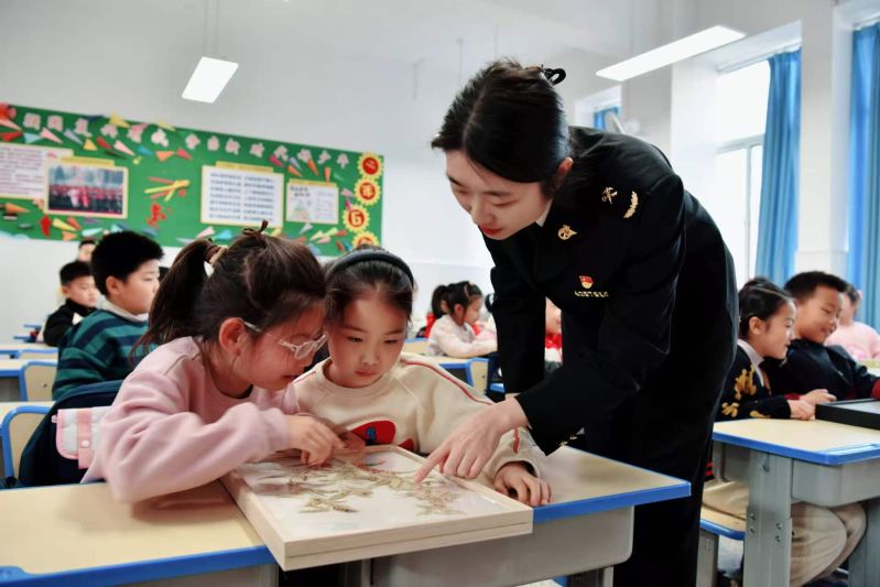 近日,青島海關所屬煙臺海關技術中心走進煙臺市南山路小學,開展國門生物安全科普進校園活動。海關關員通過課堂講解、互動游戲、動植物標本展示等形式,向同學們介紹海關工作職責、外來入侵物種危害等知識,引導大家爭做“國門安全小衛(wèi)士”。(孔昕昕/文)